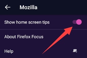 When you install and open firefox focus it will display tips on the home screen if you want to change this later in the settings, and disable it.