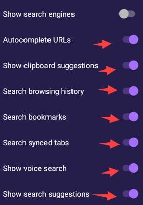 It’s always good to turn off search suggestions because when its on, everything what you type in search bar it’s directly send to the search engine.